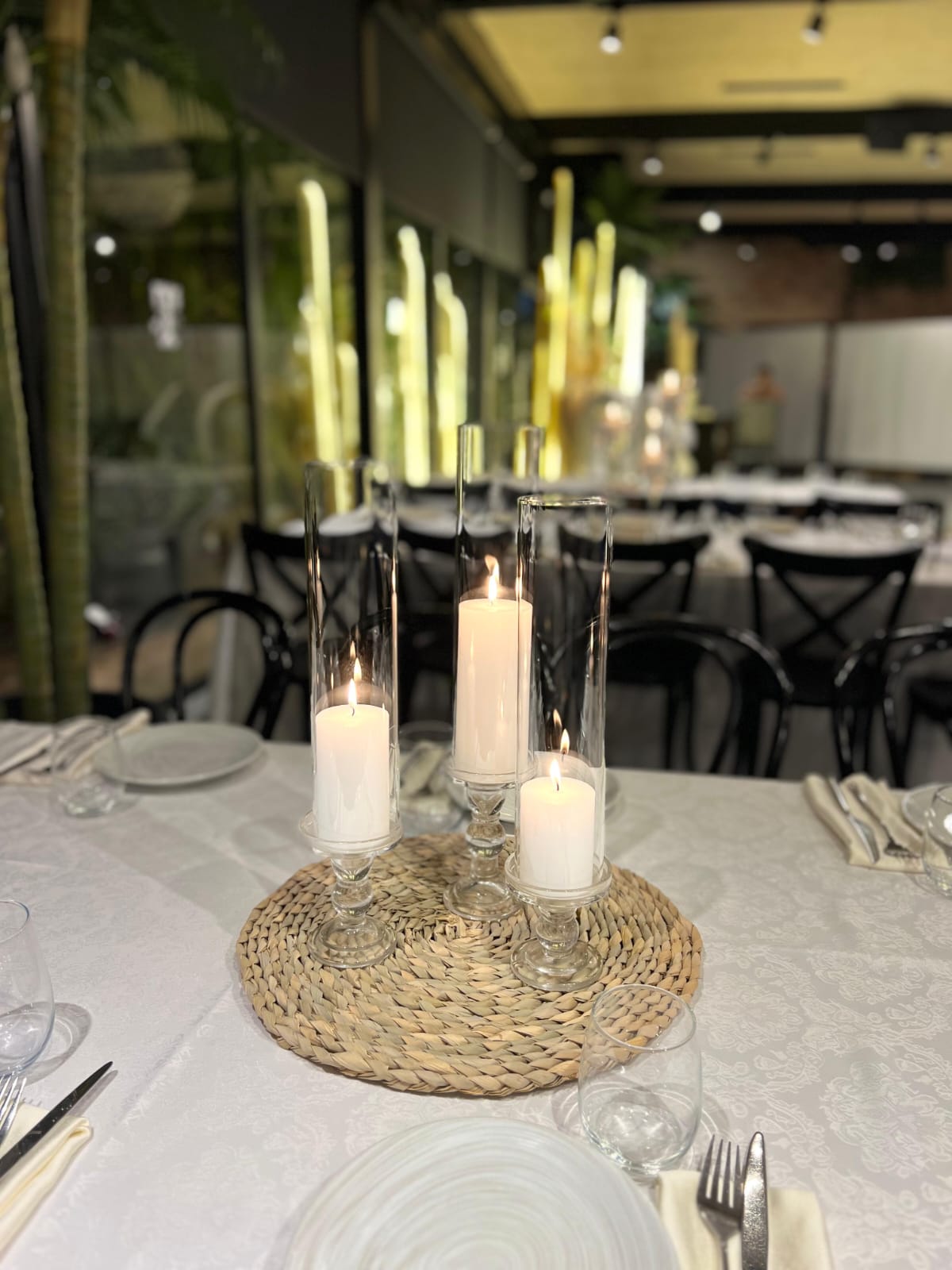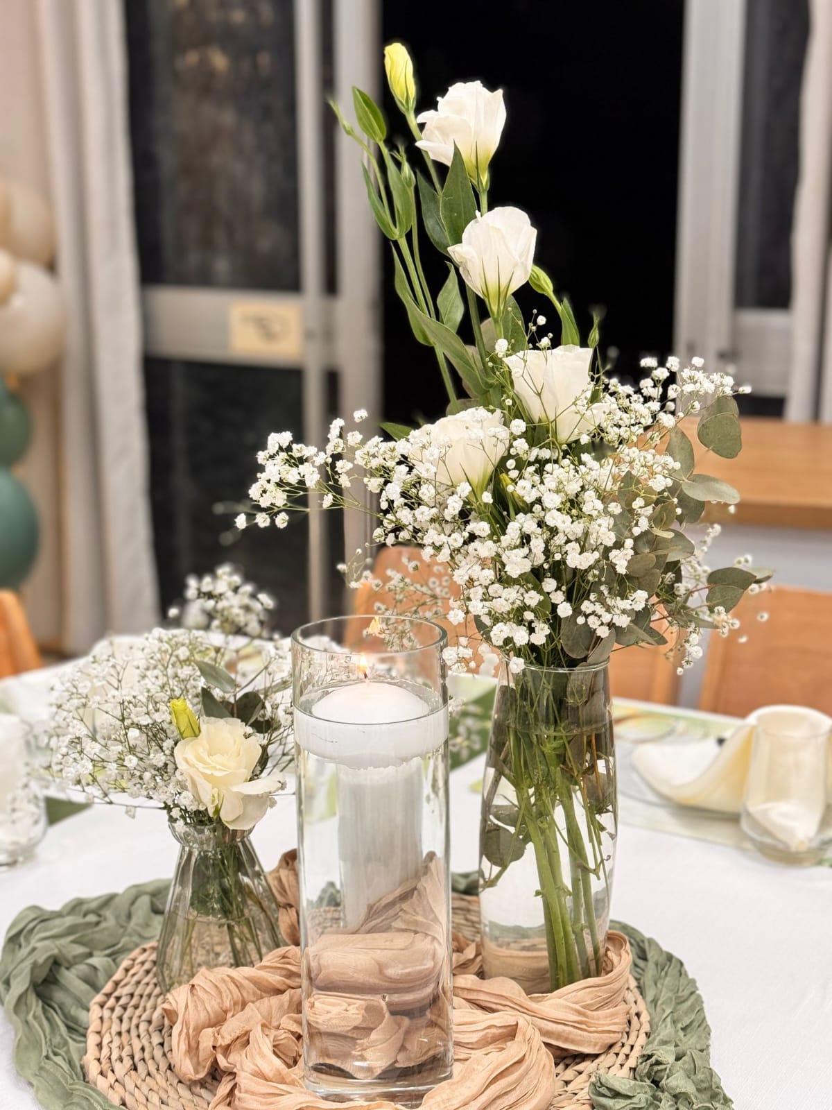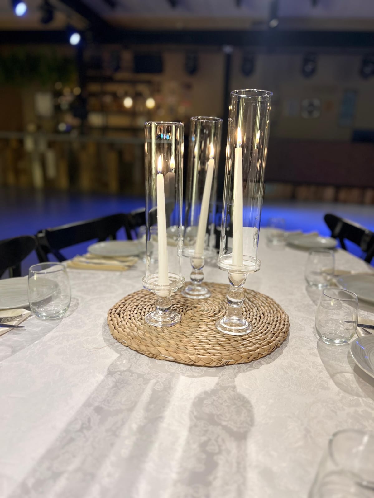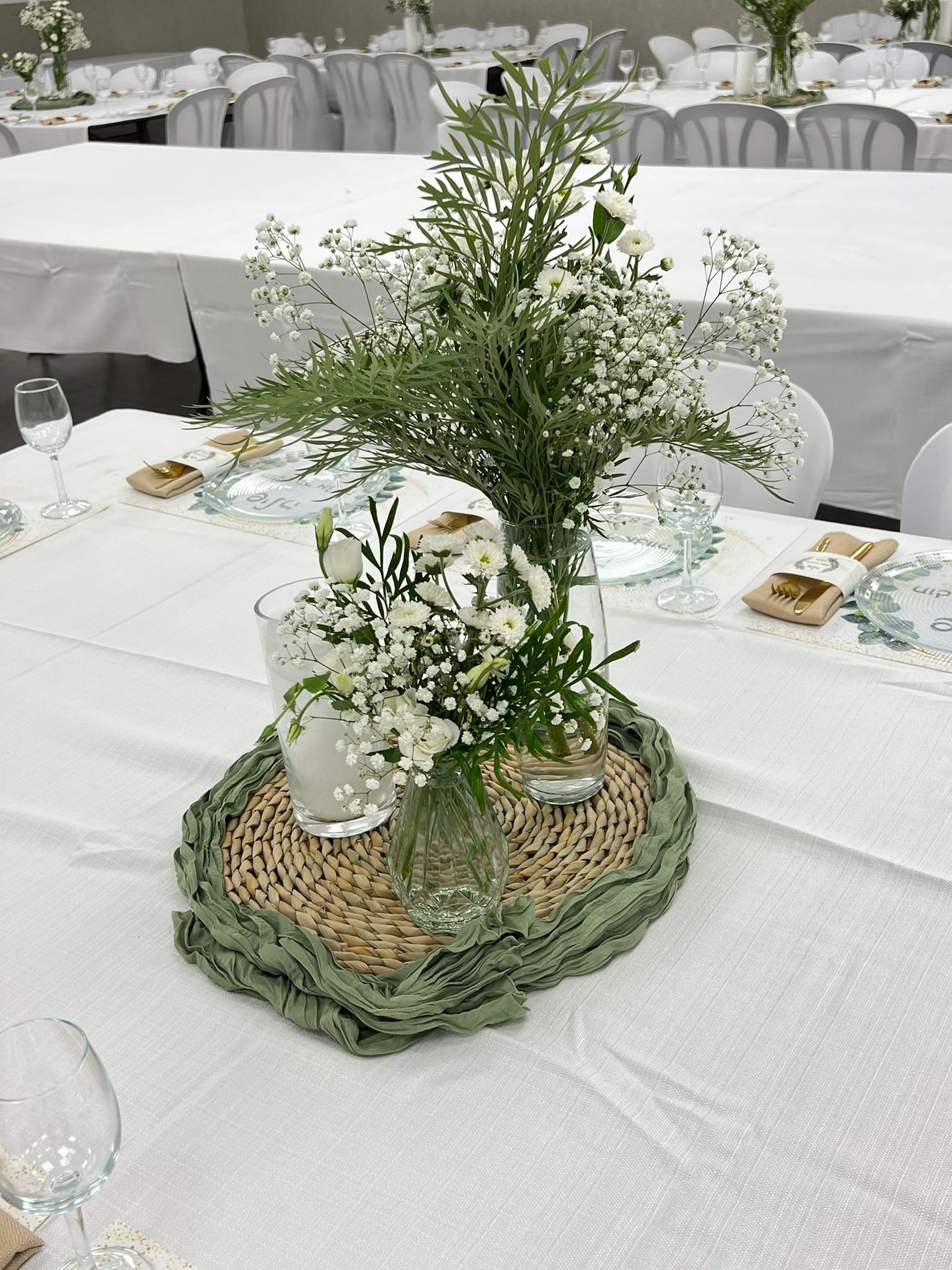 כחלק מהעיצוב שולחנות לאירועים, שילוב של אביזרים כמו פמוטים, נרות ופרחים יכול לשדרג את המראה הכללי. פרחים טריים מוסיפים חיים וצבע ואביזרים נכונים יכולים להוסיף גובה ומימד נוסף לעיצוב.