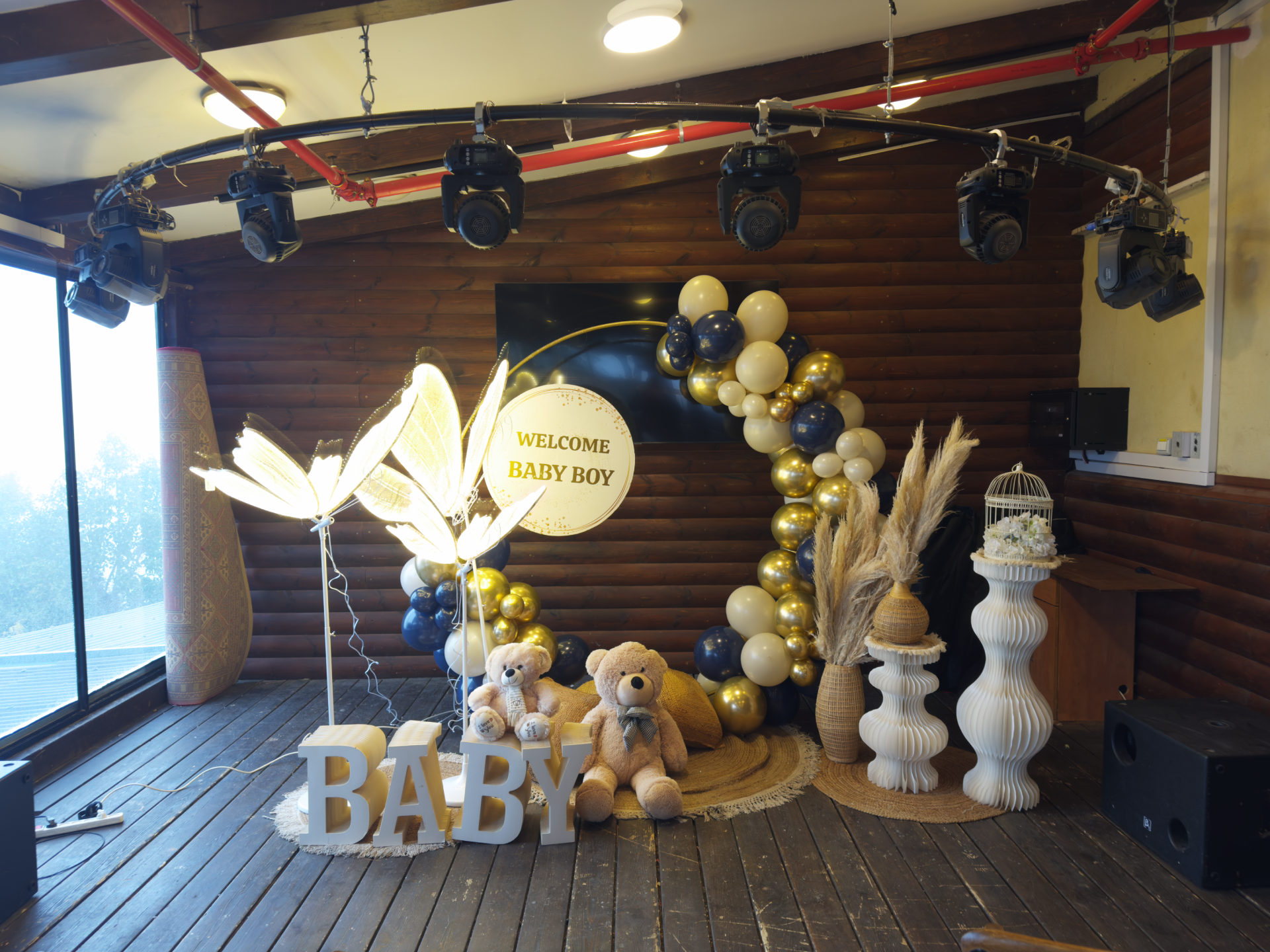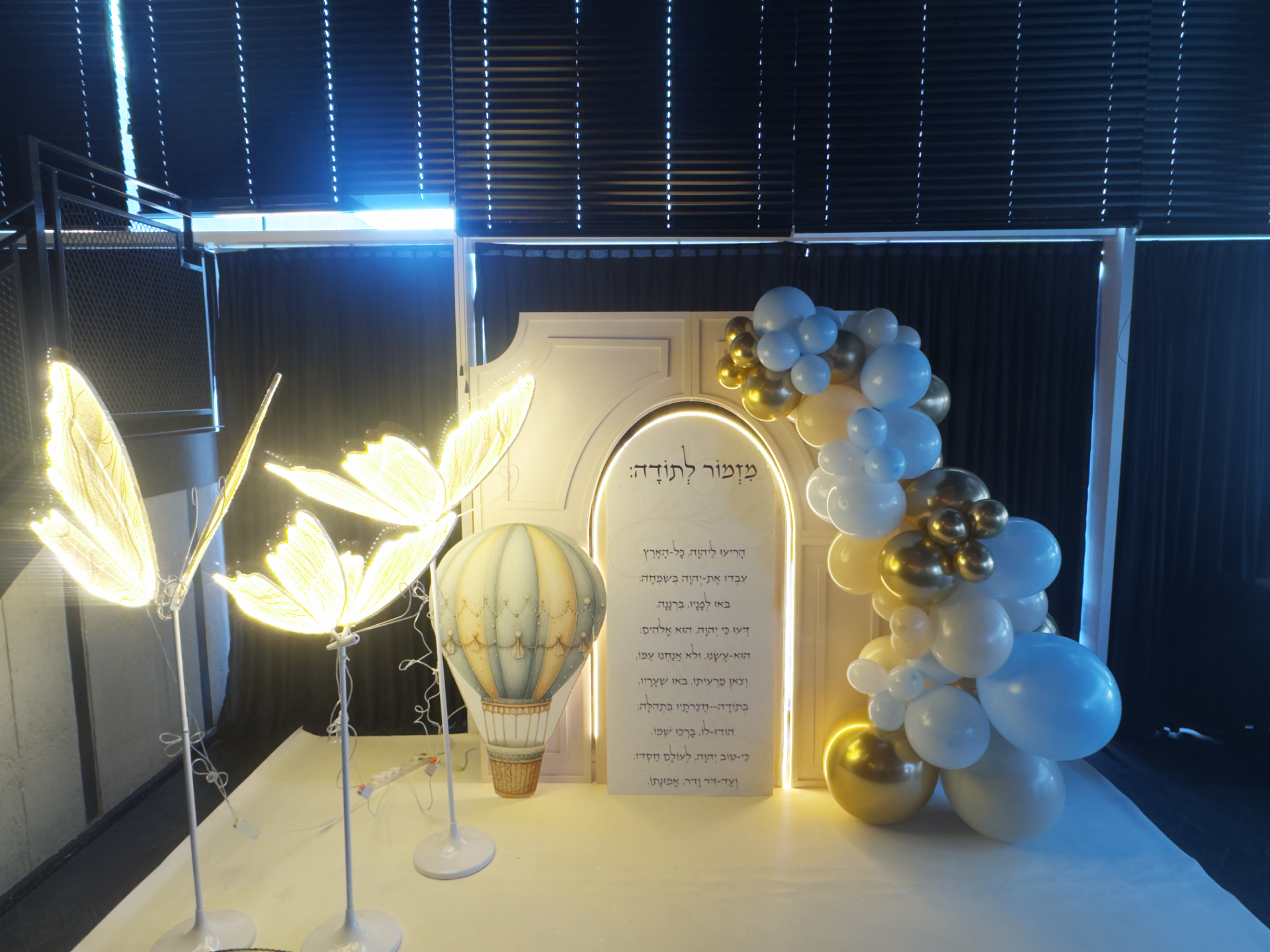 קיר מעוצב מאחורי אזור הטקס משמש כרקע מושלם לתמונות. אפשר לשלב את שם התינוק או התינוקת באותיות מעוצבות, יחד עם ברכות מסורתיות או פסוקים מתאימים. שימוש בצבעים רכים ואלגנטיים, כמו גווני זהב, כסף ותכלת או ורוד, יוצר מראה מרשים אך לא מוגזם.