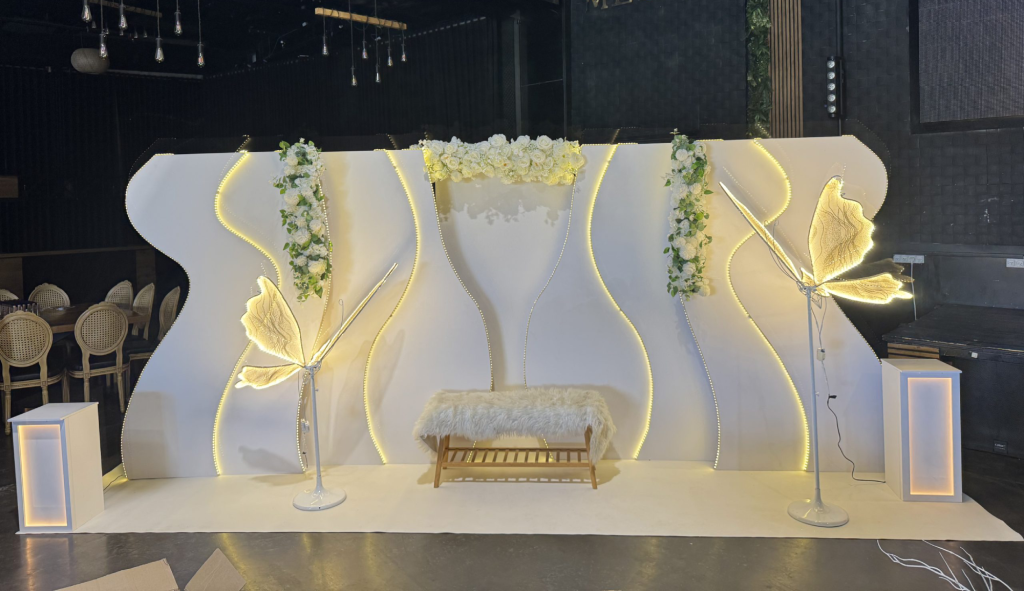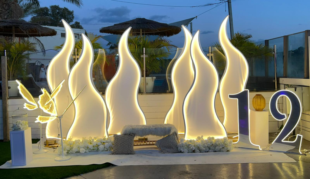 בזמן שהמתחרים מסתפקים בקשת בלונים פשוטה, אנחנו בונים עבורכם סט צילום תלת-ממדי. שילוב של טקסטורות, קירות עץ מעוצבים, צמחיית פמפס יוקרתית, שטיחים, תאורת נאון ואלמנטים עיצוביים שיוצרים עומק בכל תמונה.